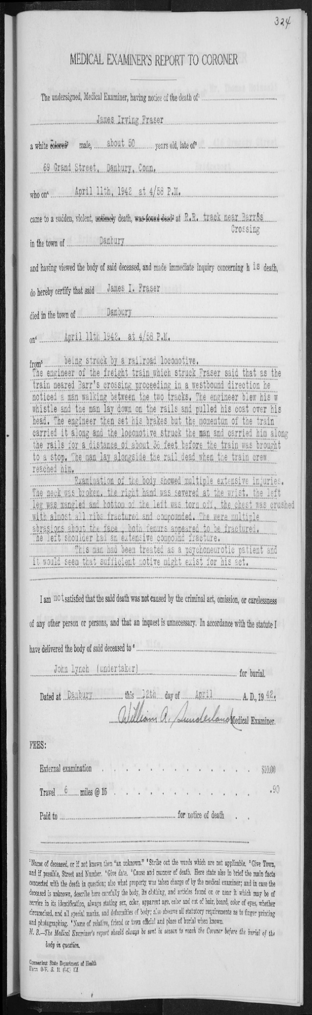 Irving was buried in Wooster Cemetery in Danbury and was listed as Age 51 yrs, 11 mos, 10 days old. It is worth taking note that Irving died on April 11, 1942.