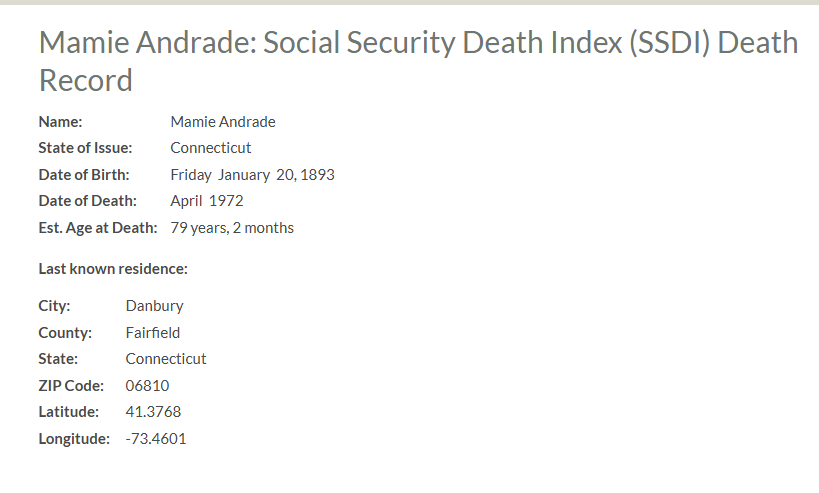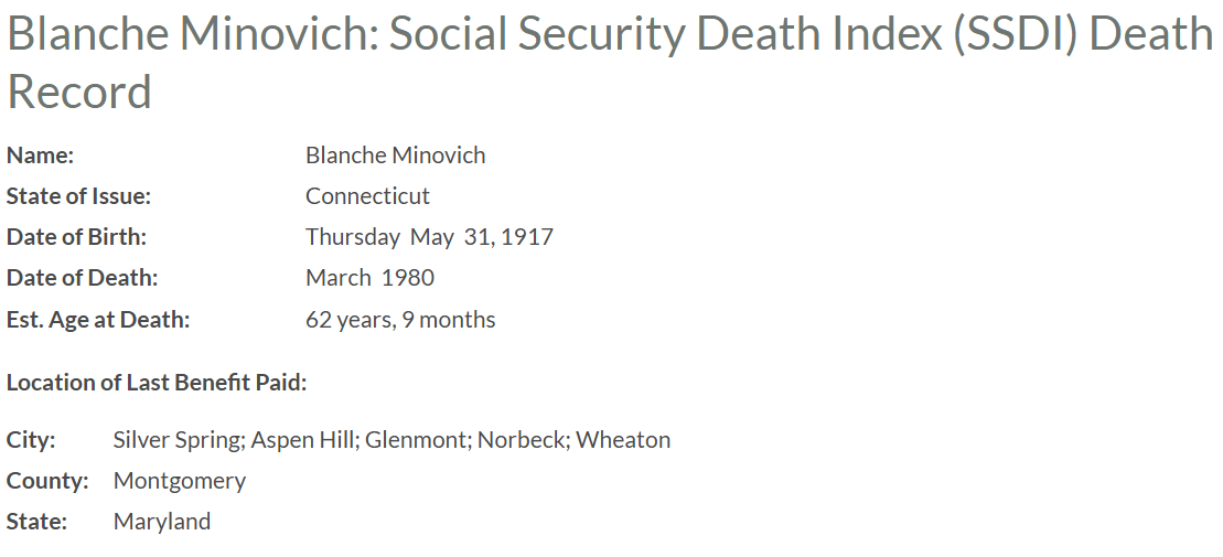 The following is Blanche’s Social Security Death record.