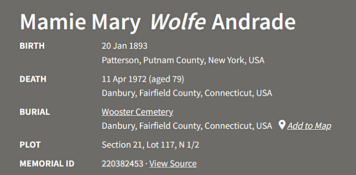 Okay, so maybe they over did it every now and then. I’m still glad they found one another! RIP Manny and Mamie! “Jesus loves you more than you will know” Paul Simon 1968. It is unfortunate, however, that history, or at least, genealogy, has forgotten the most important part of Mamie’s life! (End of editorial number 3)
