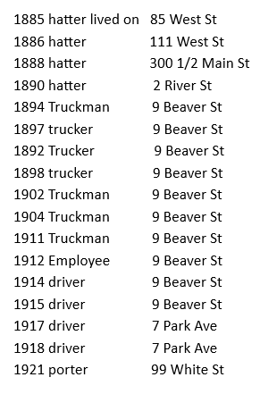 Beaver St was in the outskirts of town back when Joseph and his family lived there. Anything further west than this area was farm land. Beaver St, Elm St and Spring St were all preferred areas because they were close to stores and hat factories and the people living there could walk to work if they worked in one of these places. Many people did. Some houses from the late 1800s remain on Spring St and the surrounding area and they are still very nice houses. It does seem that 9 Beaver St was a nice place to live in the late 1800s and early 1900s.