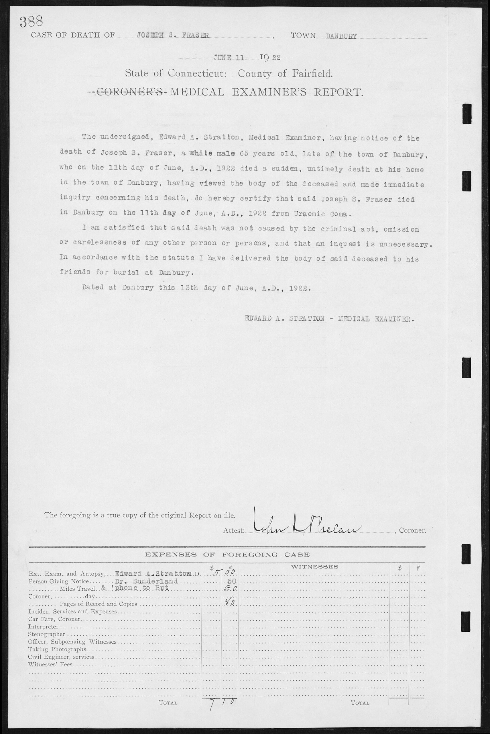 The following is what the coroner said about Joseph S Fraser’s death. It looks like he wasn’t found until two days after his death.
