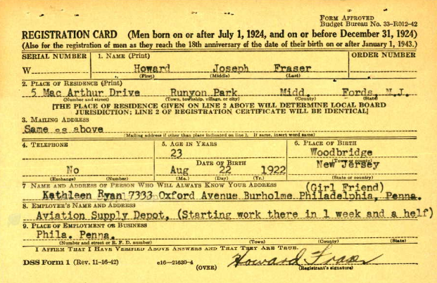 Then, she married James Donald Fraser on October 25th of the same year. The two children of the James Donald and Emma Eisenhauer Fraser marriage, Howard and Helen, lived in their new household after the James Donald Fraser and Grace Elizabeth Scofield Bennett wedding took place but they didn’t stay for long. Howard turned 17 in 1940 and joined the Navy. On his draft card, he entered as next of kin, Kathleen Ryan, who was his girlfriend. He was already honorably discharged from the Navy and was 23 years old by the time he filled out his draft card. Still, it was obvious he wanted nothing to do with his father James Donald Fraser. His sister Helen left home early too, actually living with her brother Howard before moving out on her own. The two seemed to do well in life.