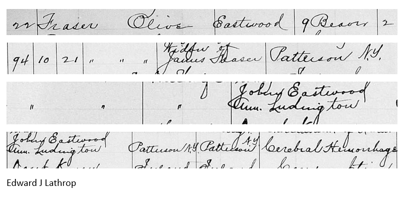 As we have seen, most of Comfort Ludington’s sons are hard to find but not all of them are. However, his daughters are just about impossible to find or even to find out who they actually are. The one exception to this is Ann or Anne. She is referred to in Comfort Ludington’s will as Anne Smith. There was nothing at all known about her until about the middle of 2024. It took autosomal DNA to unearth her! The problem was there was absolutely no information about Ann or Anne Ludington, daughter Comfort Ludington. Fortunately, we knew a lot about Ann Eastwood, wife of John Eastwood of Patterson, New York. It was matching DNA that led us to the conclusion that Ann Ludington and Ann Eastwood were the same person. This DNA was matched between members of the Barrett family of Danbury and members of Nellie Nickerson’s family. Nellie Nickerson was Ann Ludington’s mother and descendants of Ann Eastwood were related her. Once this was known, much more collaborating evidence was found.