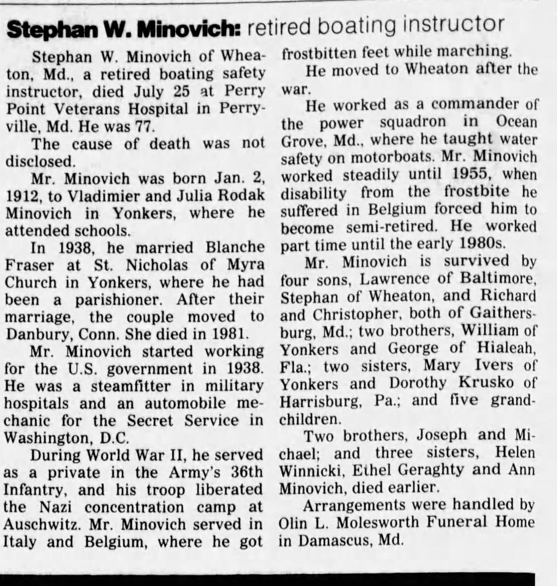 You will notice the Fraser sister, Betty is Smades in this obituary but she was married several times. Her name was Smades 1991. Actually, Betty died one month after this obituary.